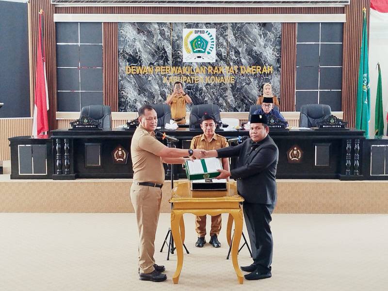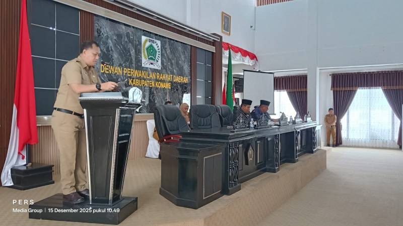 IKONSULTRA.COM : KONAWE – Dewan Perwakilan Rakyat Daerah (DPRD) Kabupaten Konawe, Sulawesi Tenggara, menggelar Rapat Paripurna dengan agenda penyerahan dokumen Rancangan Peraturan Daerah (Raperda) Bantuan Hukum bagi Masyarakat Miskin yang diusulkan oleh Pemerintah Daerah, serta enam Raperda inisiatif DPRD, pada Senin (15/12/2025).