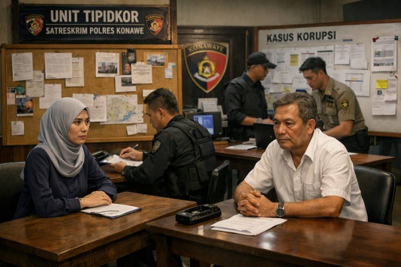 Setelah memeriksa sejumlah pejabat, penyidik Polres Konawe kembali memanggil dan memeriksa seorang Pegawai Pemerintah dengan Perjanjian Kerja (PPPK) berinisial N pada Rabu (08/4/2026). N diketahui merupakan aparatur sipil negara (ASN) yang bertugas sebagai staf Bupati Konawe.