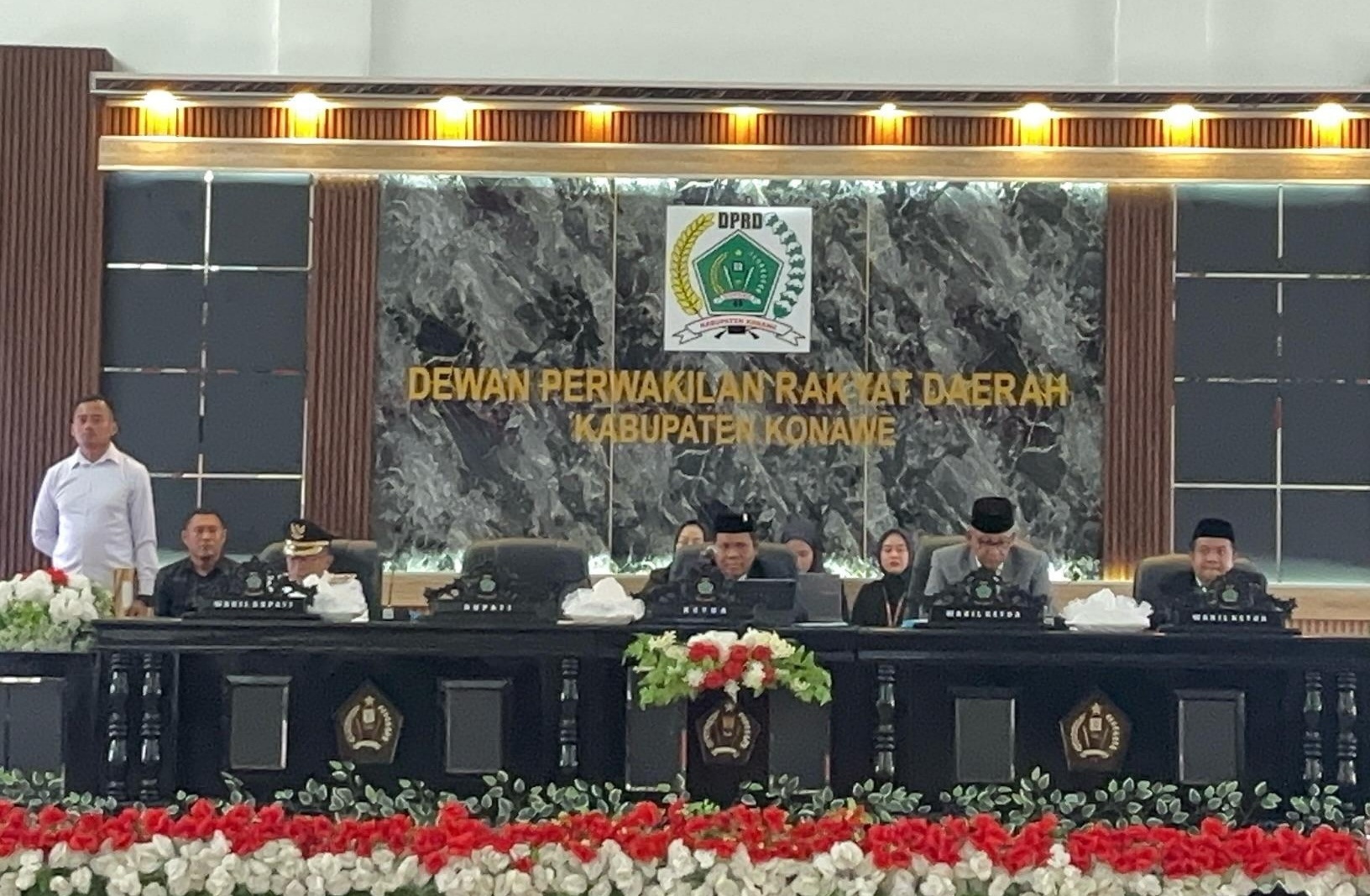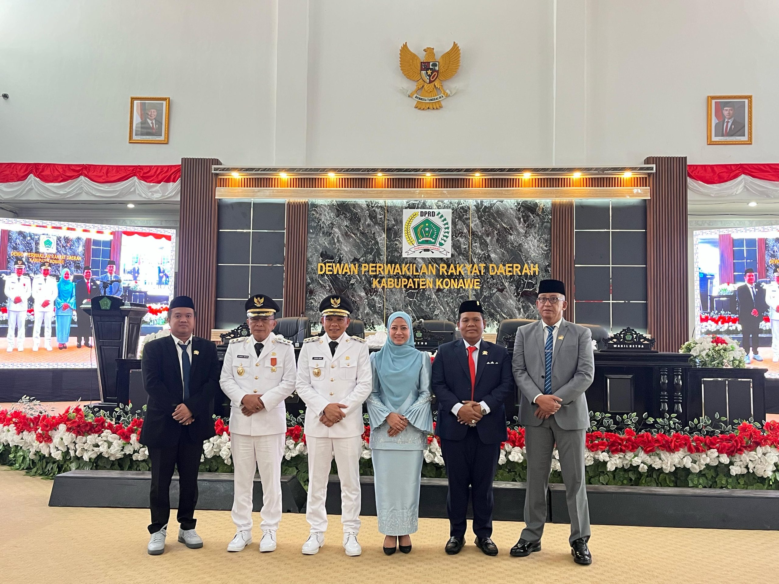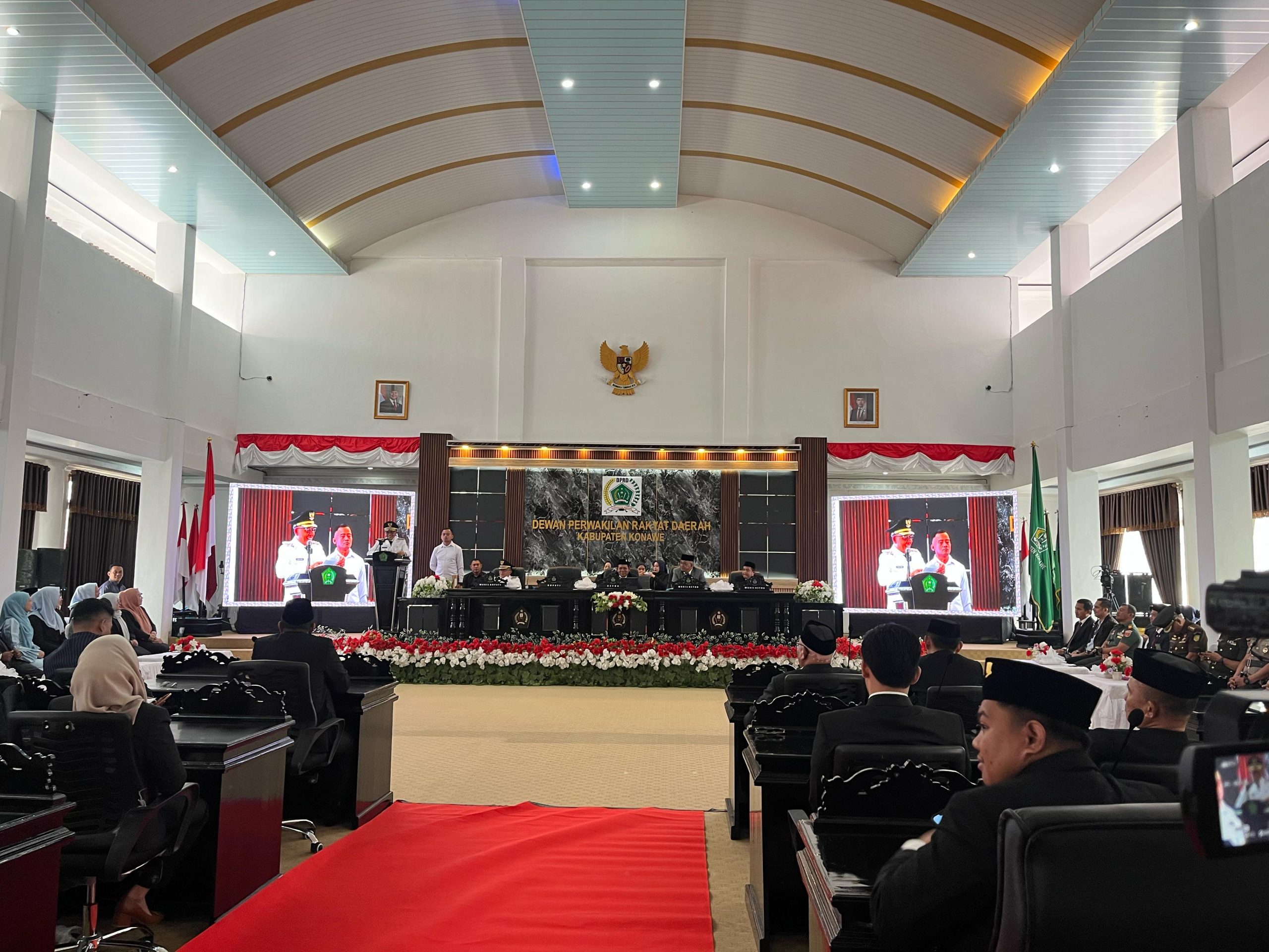 Rapat Paripurna Istimewa tersebut dipimpin oleh Ketua DPRD, I Made Asmaya, S.Pd, MM, dan dihadiri langsung oleh Bupati Konawe H. Yusran Akbar, ST, serta Wakil Bupati H. Syamsul Ibrahim, SE, M.Si. Selain itu, turut hadir Wakil Ketua 1 DPRD Konawe, Nuryadin Tombili, SE, dan Wakil Ketua II, Nasrullah Faizal, SH.