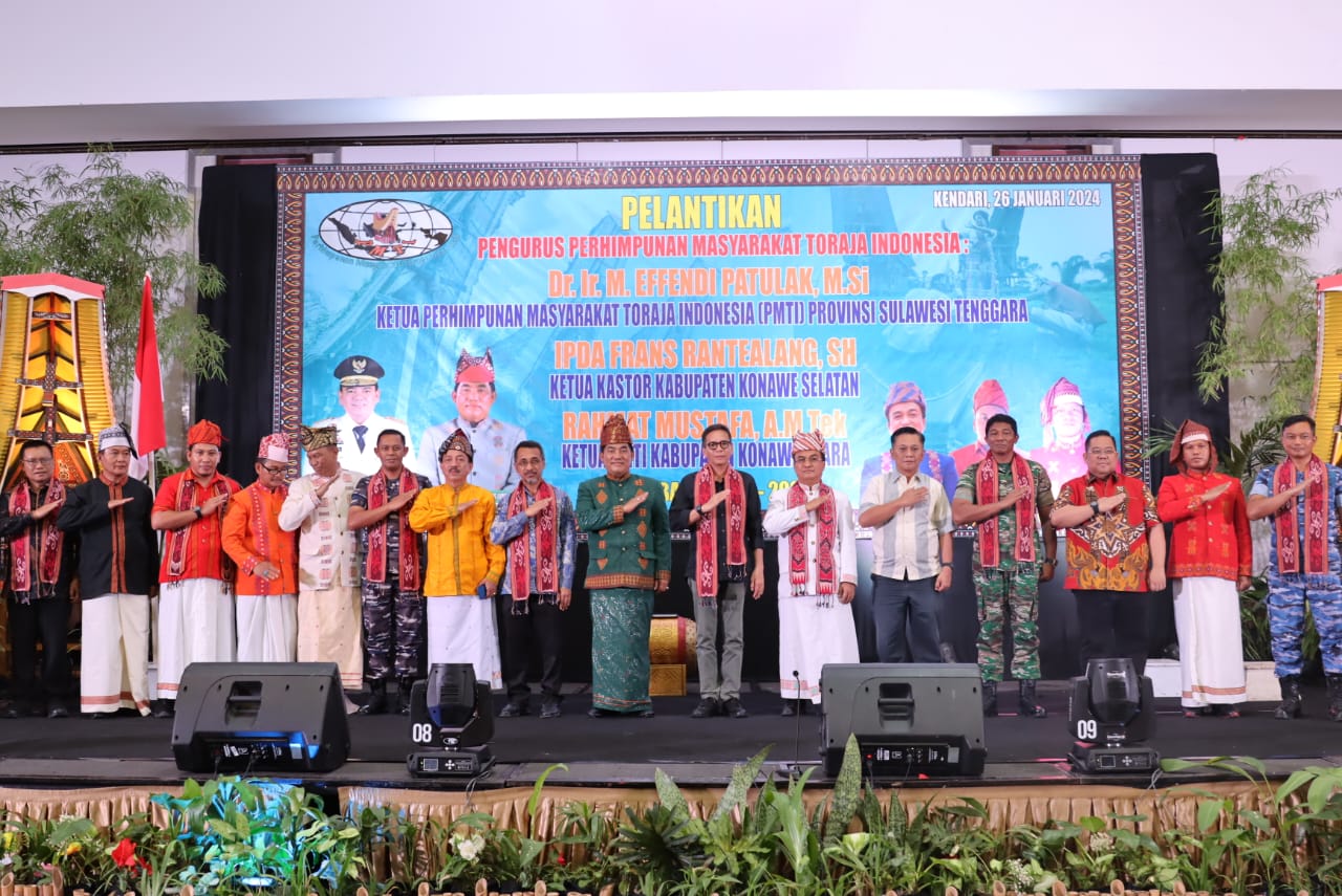 IKONSULTRA.COM : KENDARI – Pengurus Perhimpunan Masyarakat Toraja Indonesia (PMTI) Provinsi Sulawesi Tenggara (Sultra) masa Bakti 2023-2028 resmi dilantik atau dikukuhkan pada Jum’at, 26 Januari 2024.