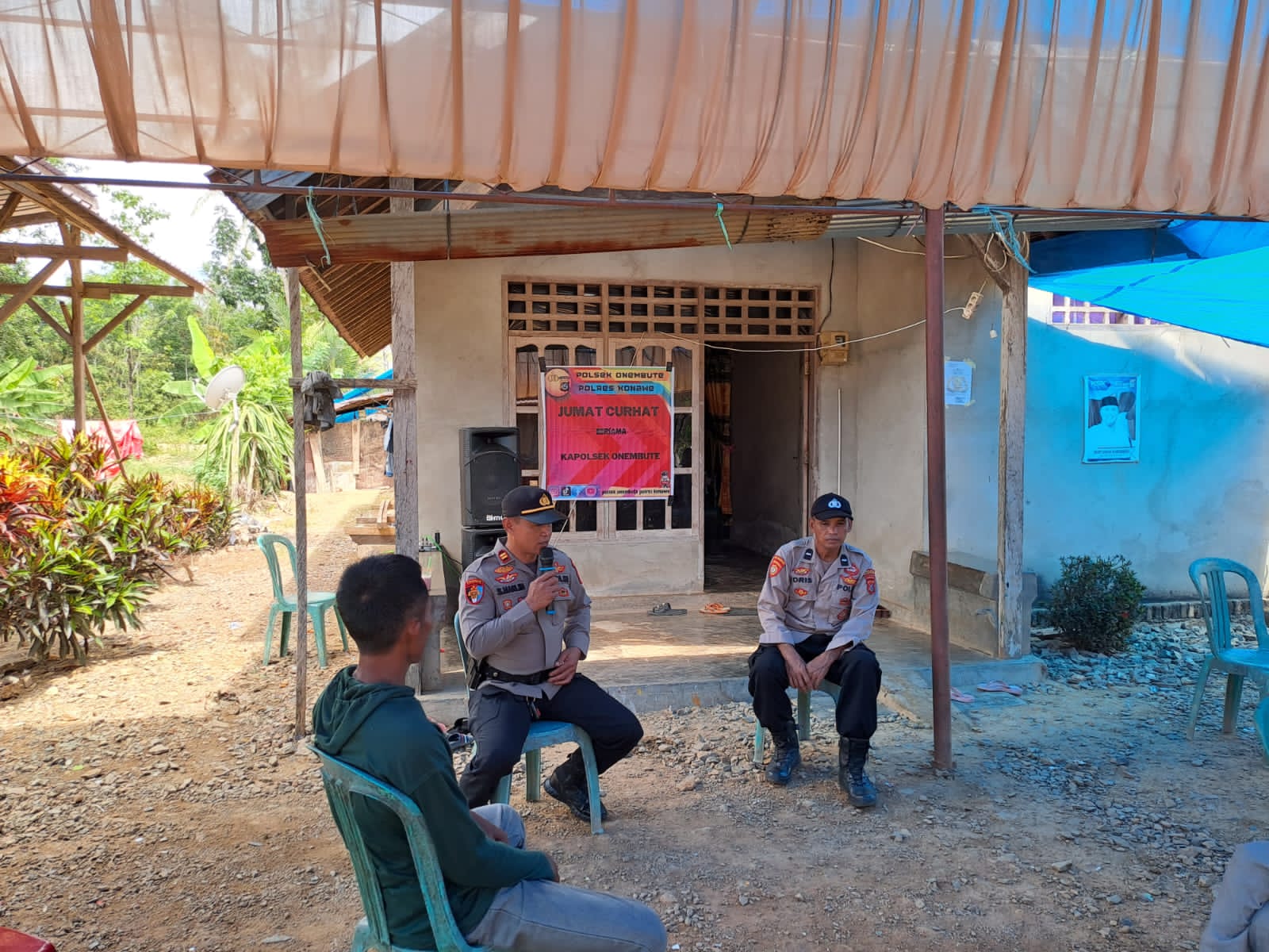 IKONSULTRA.COM : KONAWE – Kepolisian Sektor (Polsek) Onembute, Kabupaten Konawe kembali melaksanakan kegiatan Jum’at curhat dan juga dirangkaikan dengan shalat Jumat berjamaah,bertempat di Desa Napoosi, Kecamatan Onembute, Jumat (13/1/2023).