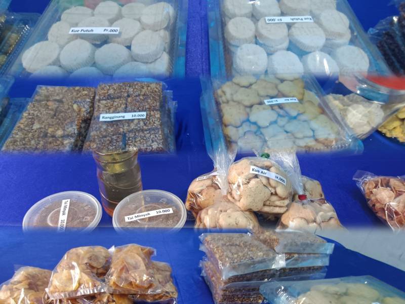 “Kami pastikan semua produk yang dibawa ini murni buatan masyarakat kami sendiri. Biar sedikit, tapi benar-benar produk rumahan, hasil olahan warga seperti kue raginang, kue putu, kue air, keripik pisang, minyak kelapa, dan blondo (ampas dari pembuatan minyak kelapa),” jelas Lubis.
