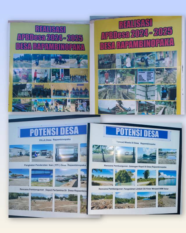 Sebagai bagian dari transparansi desa, Pemdes Rapambinopaka juga menampilkan dokumentasi realisasi APBDes tahun 2024–2025, yang menunjukkan komitmen pemerintah desa dalam pengelolaan anggaran dan pembangunan berkelanjutan.