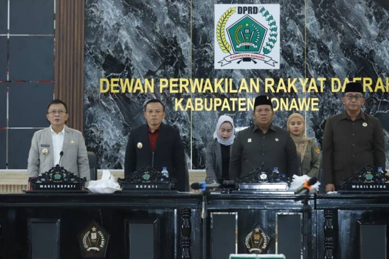Rapat dipimpin Ketua DPRD Konawe, I Made Asmaya, S.Pd., MM, dan dihadiri Bupati Konawe H. Yusran Akbar, ST, Wakil Bupati H. Syamsul Ibrahim, SE, M.Si, Forkopimda, Sekda Dr. Ferdinand, SP., MH., serta kepala OPD lingkup Pemda Konawe.